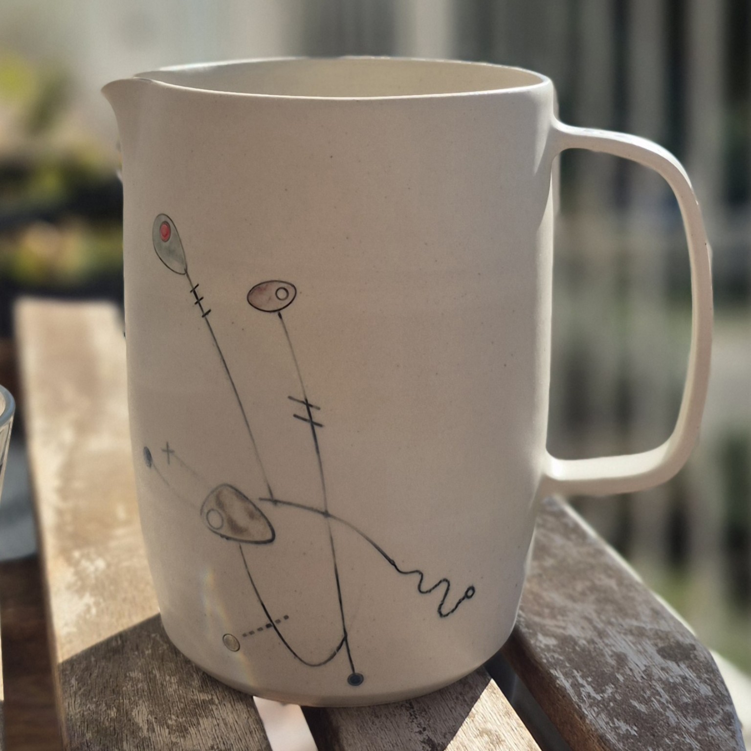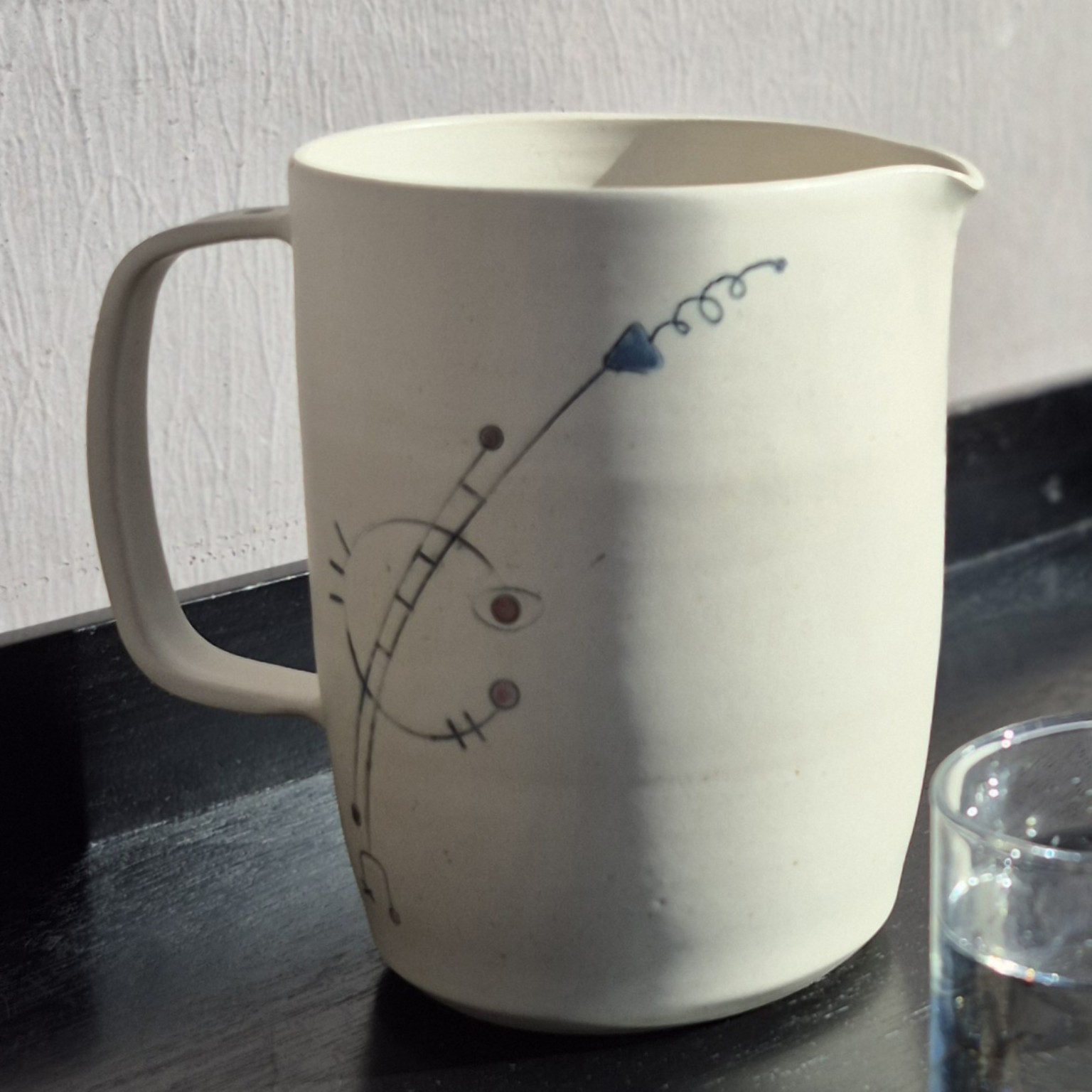 Ce pichet en grès blanc émaillé est façonné et décoré à la main dans mon atelier à Grenoble.